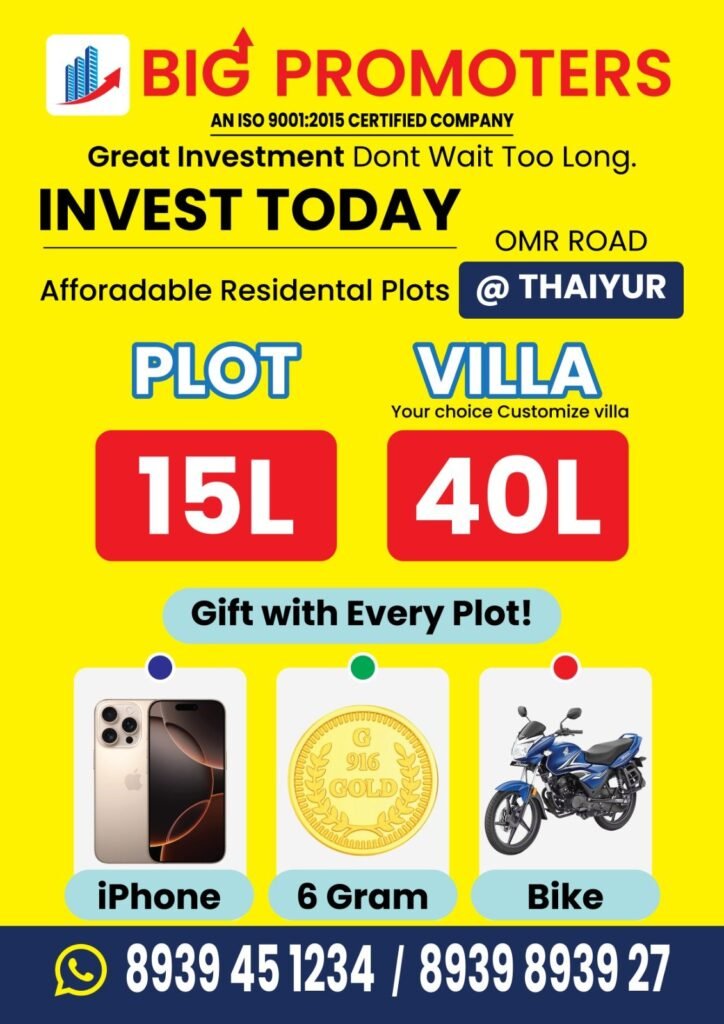 Green Park Green Park Quick Links Home About Us services Ongoing Projects Upcoming Projects Tambaram Plots Contact Us Get In Touch +91-8939 8939 27 +91-8939 45 1234 bigpromoters1234@gmail.com, Plot No D1, Shop No.2, Sumeru City, IAF Road, Indira Nagar, Selaiyur, Chennai - 600073 Social Media Facebook Instagram Youtube